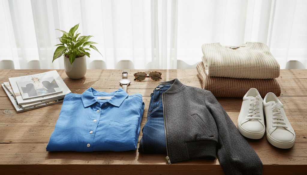 - Alltagskleidung: Jeans, T-Shirts, Pullover, Hosen, Röcke und Kleider für den täglichen Gebrauch.